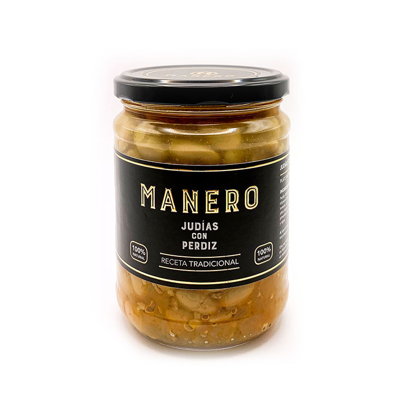 Ingredientes: Perdiz 40%, judía piñonera blanca, cebolla, tomate, ajo, aceite de oliva virgen, vinagre, pimentón, laurel, sal y agua.